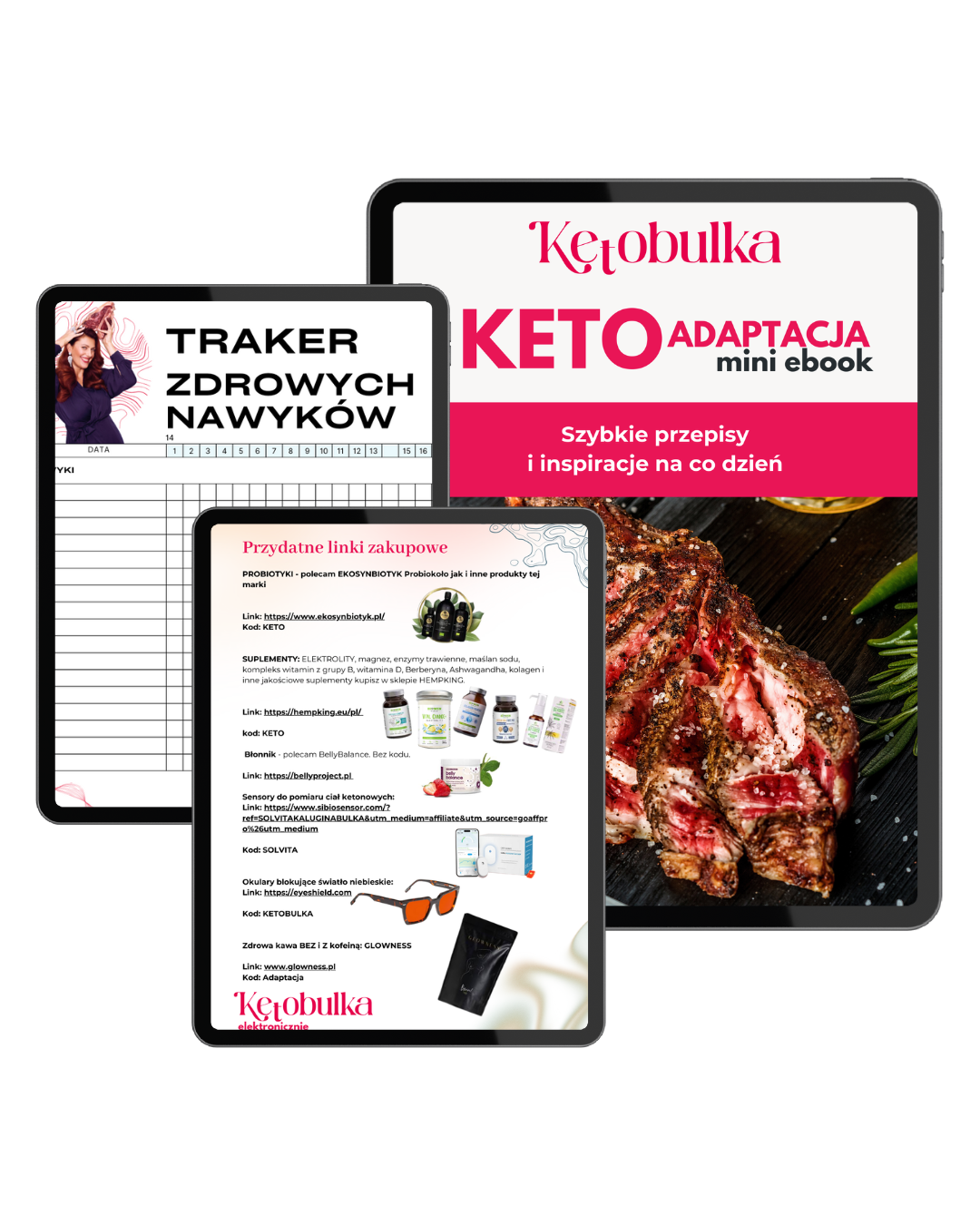 To pakiet moich kultowych szkoleń, który kompleksowo przeprowadzi Cię przez proces keto adaptacji, redukcji i stabilizacji. Otrzymasz ode mnie nie tylko wiedzę, ale i cenne bonusy, które wesprą Cię na Twojej ścieżce po nowe JA.